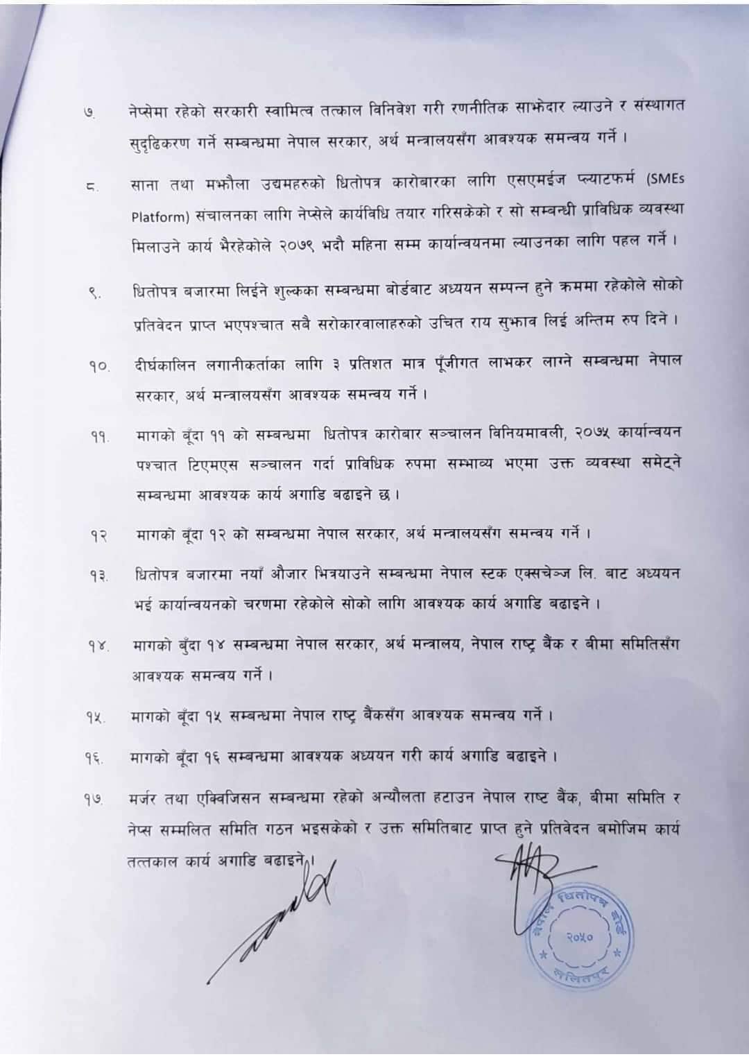 कोईरालाले अगाडी सारेका यि कामहरु बाहेक अन्य कामहरुका लागि पनि सहकार्य गरेर अगाडी बढ्ने भन्दै अध्यक्ष हमालले प्रतिवद्धता व्यक्त गरेका छन् । नेपाल राष्ट्र बैंक सँग समन्वय गर्ने कार्यहरु अगाडी बढाइरहेको समेत उनले बताए । आवस्यक परेमा बजार उकास्नका लागि आवस्यक परेमा सरकार सँग पनि समन्वय गर्ने उनले प्रतिवद्धता व्यक्त गरेका छन् ।