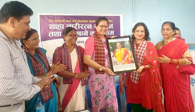 हेटौंडा । प्रदेश नं ३ को राजधानी हेटौडामा रहेको रेडियो थाहा सञ्चारले तीज विशेष कार्यक्रमको अवसर पारेर समाजसेवी सिला श्रेष्ठलाई ‘थाहा नारी रत्न सम्मान २०७६’ बाट सम्मान गरेको छ ।
