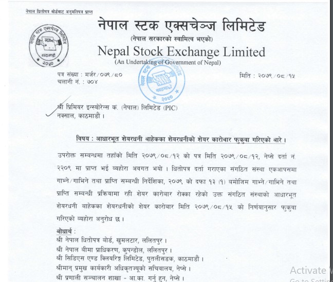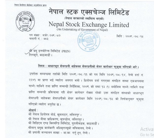नेप्सेले आधारभूत शेयरधनी बाहेकका शेयरधनीको शेयर कारोबार फुकुवा गर्ने निर्णय गरेको हो । प्रभु इन्स्योरेन्सले अजोड इन्स्योरेन्ससँग मर्जर सम्झौता गरेपछि शेयर कारोबार रोक्का भएको थियो ।