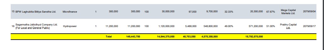 बिपिडब्लु लघुवित्तको आइपीओ विक्री प्रबन्धकमा मेगा क्यापिटल मार्केट्स लिमिटेड र सगरमाथा जलविद्युत् कम्पनीको आईपीओ विक्री प्रबन्धकमा प्रभु क्यापिटल लिमिटेड रहेको छ ।