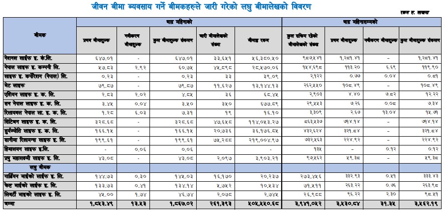 दुई महिनामा भित्रियो रु. ३५.६२ करोडको लघु जीवन बीमा व्यवसाय, कुनको कति ?