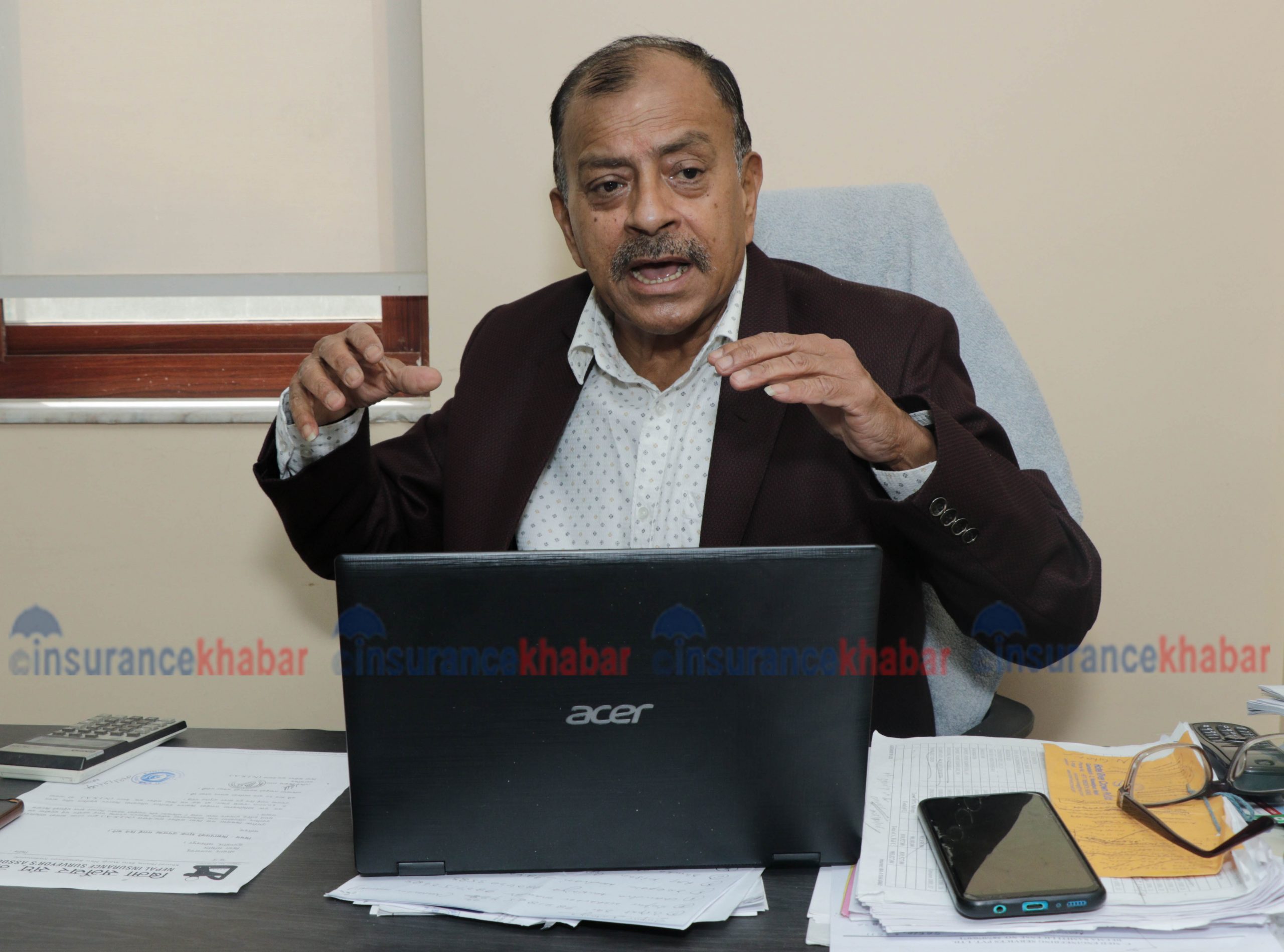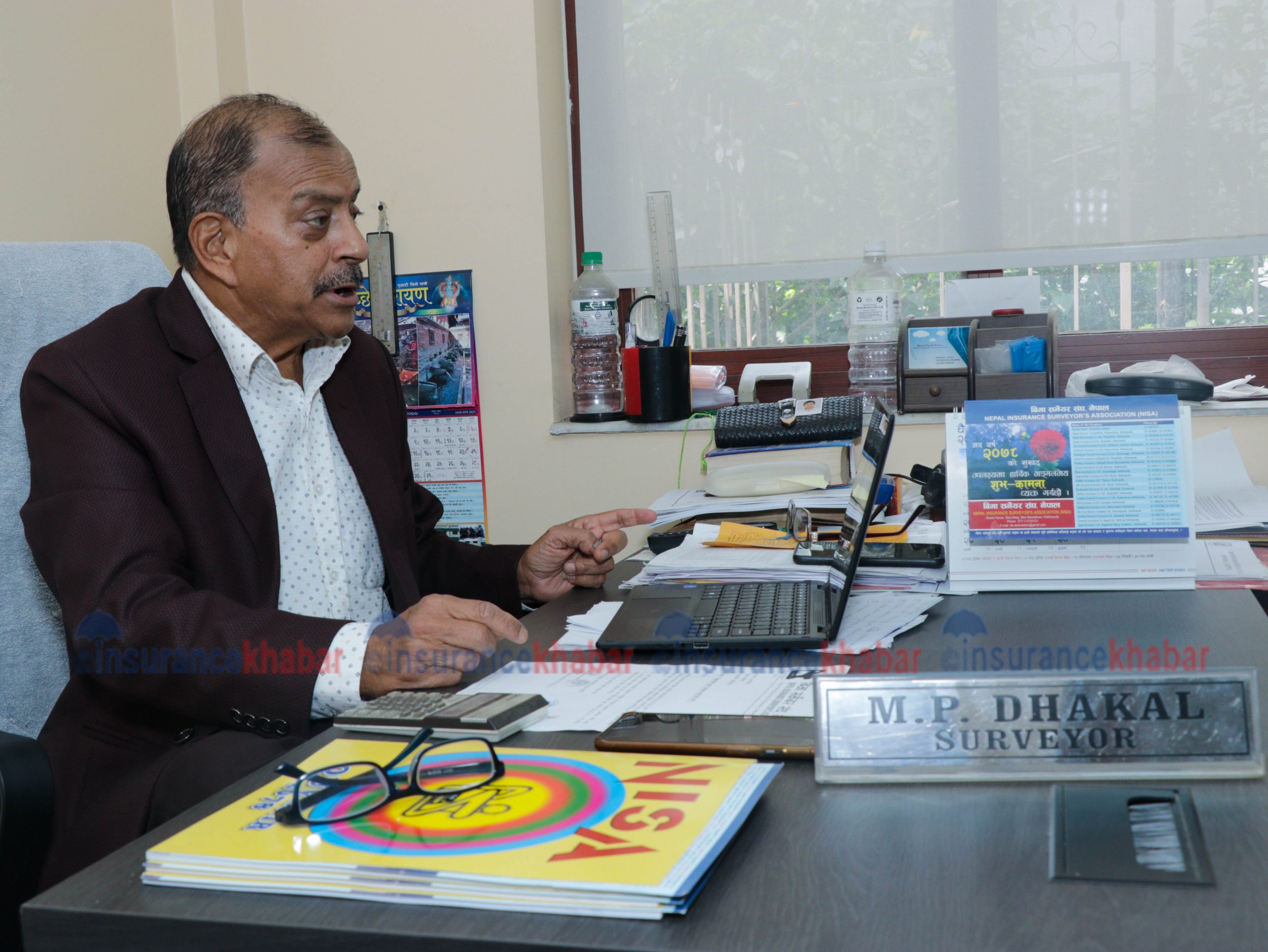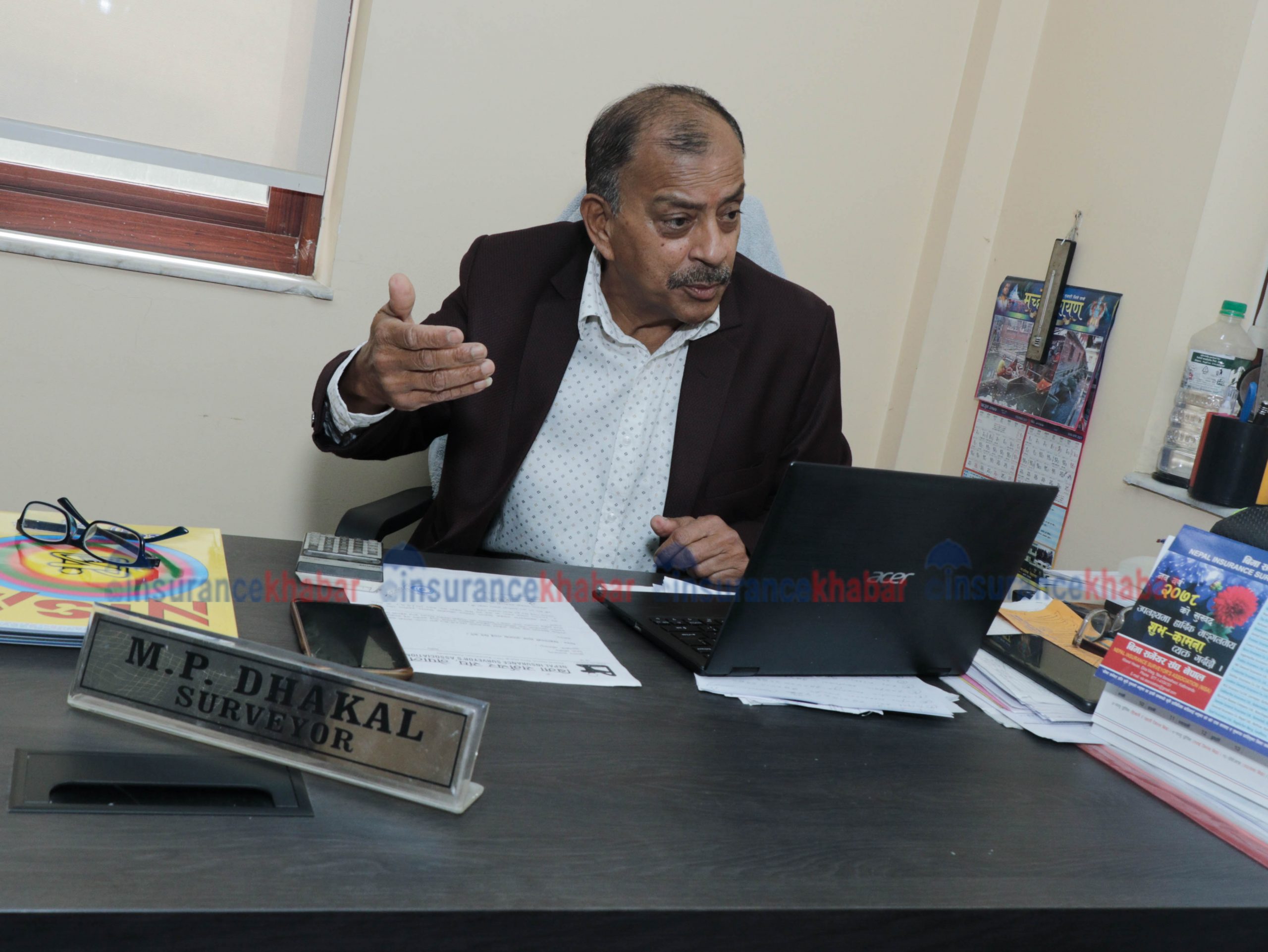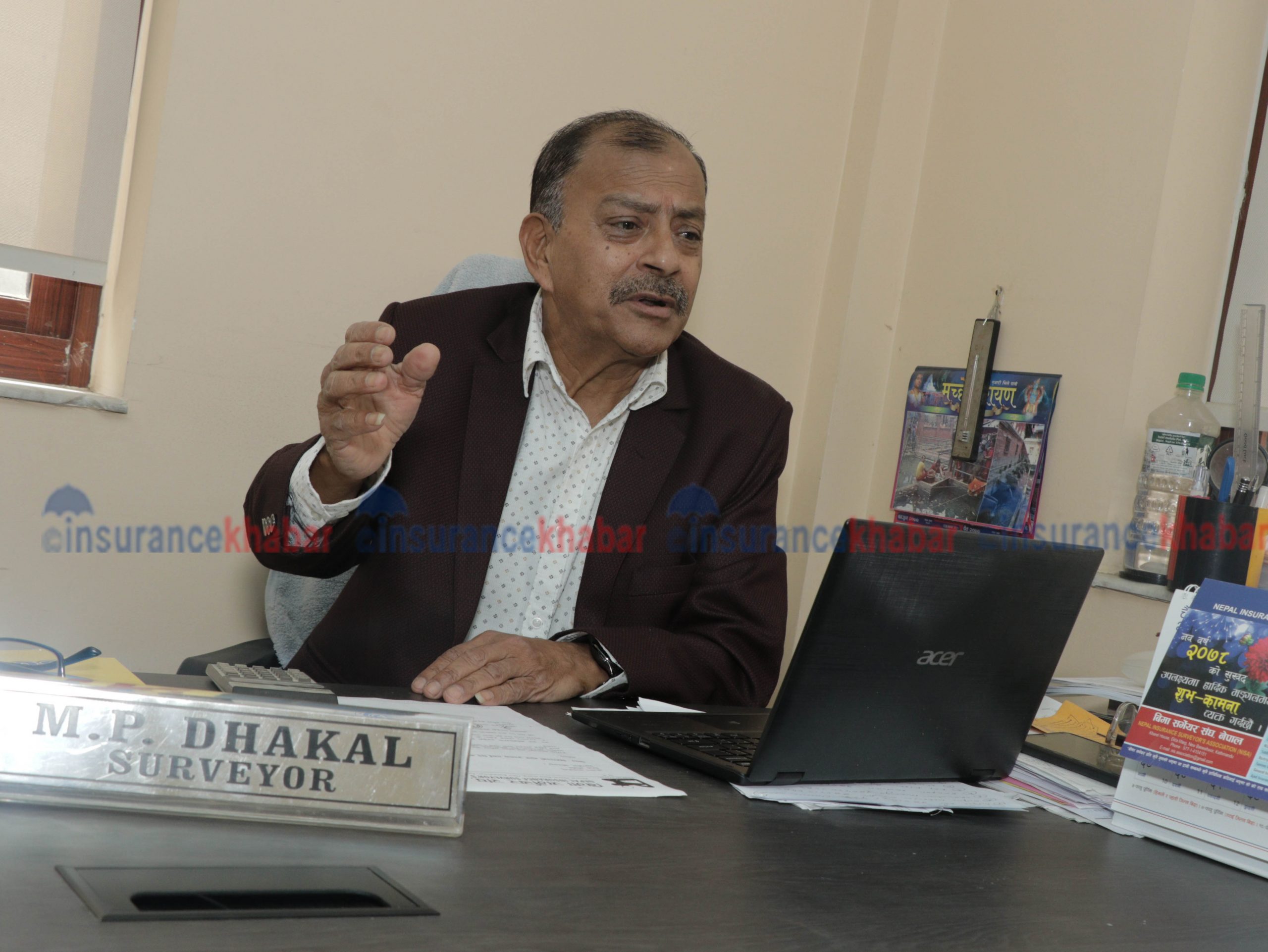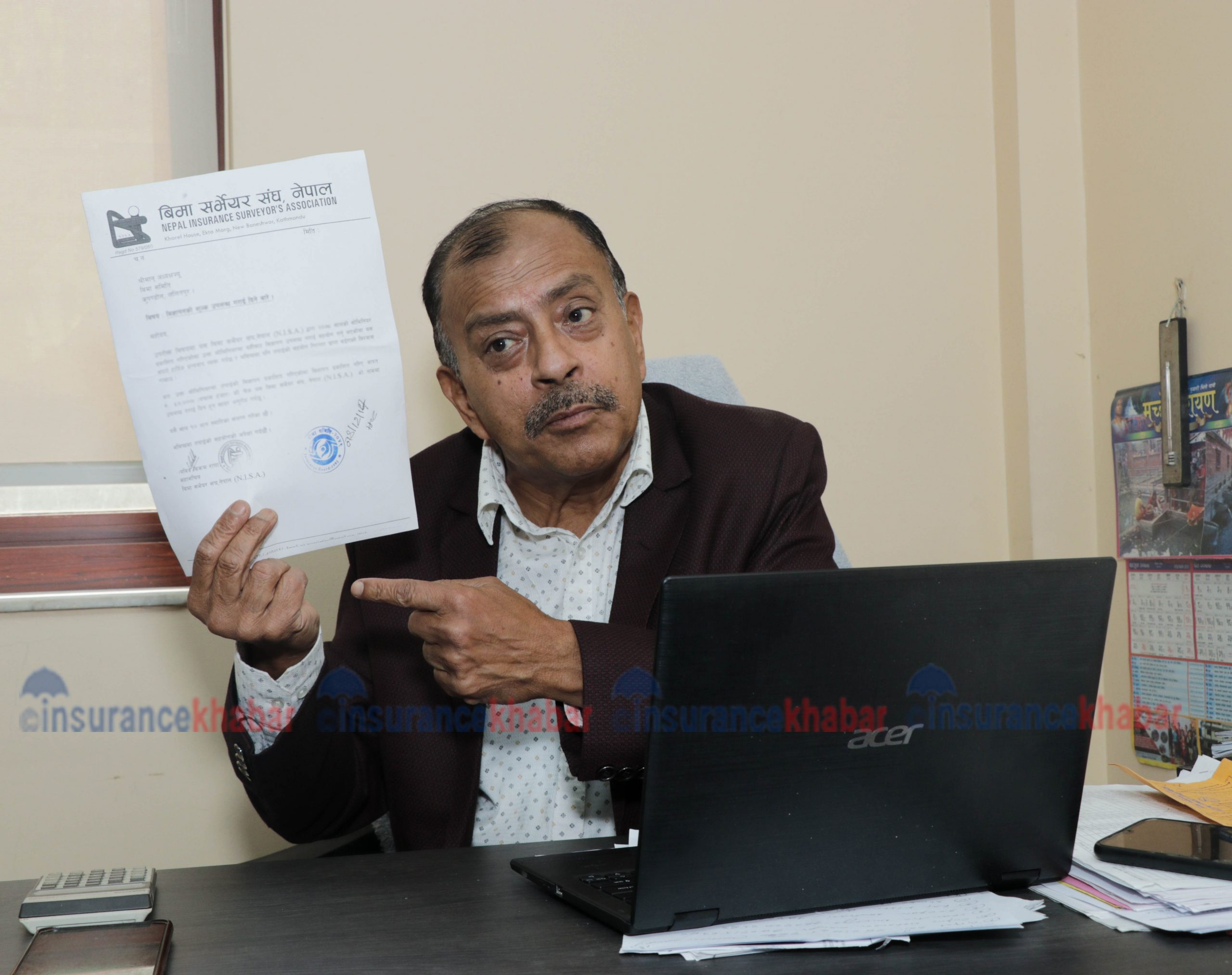 बीमा समितिले लाइसेन्स दिनु भन्दा अगाडी एउटा कार्यक्रममा बीमा कम्पनीहरुले हाम्रोमा दैनिक ८ सय भन्दा धेरै दाबी पर्ने भएकाले अहिले भइरहेका सर्भेयरले भ्याउनु हुन्न भन्नु भएको थियो । हामीले भ्याउदैनौ भनेरै साना साना दाबीलाई बीमा कम्पनीहरु आफैले दाबी फर्च्छौट गर्ने भनिएको थियो ।