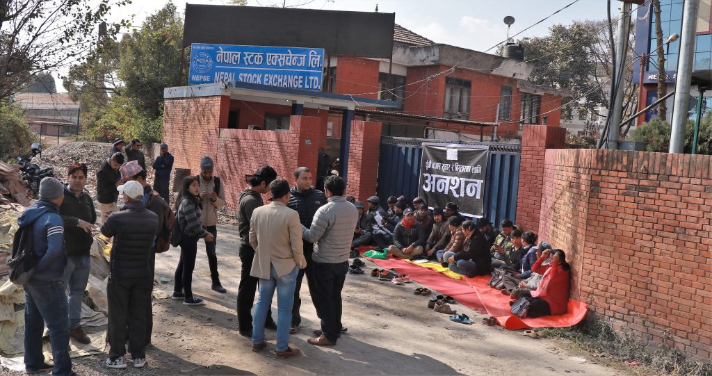 दोस्रो दिन पनि लगानीकर्ताहरुको अनसन जारी (फोटो फिचर) इन्स्योरेन्स खबर प्रकाशित मिति : २४ मंसिर २०७५, सोमबार १३:१६ समाचार सुन्नुहोस्