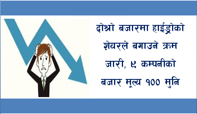 दोस्रो बजारमा हाईड्रोको शेयरले बगाउने क्रम जारी, ९ कम्पनीको बजार मूल्य १०० मुनि