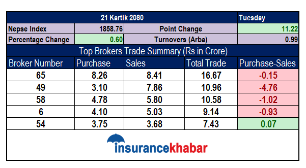 त्यस्तै दोश्रोमा ब्रोकर नम्बर ४९ रहेको छ। ब्रोकर नम्बर ४९ बाट ३ करोड १० लाखको खरिद हुँदा ७ करोड ८६ लाखको विक्री गरी जम्मा १० करोड ९६ लाखको कारोबार भएको छ ।