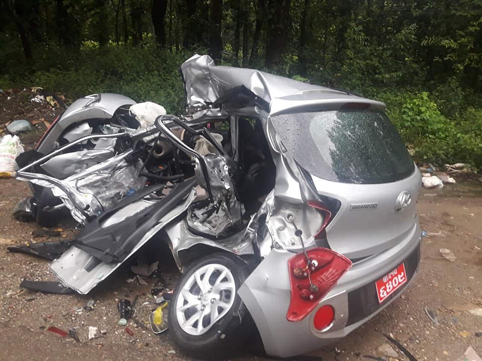 मंगलबार विहानै पूर्वपश्चिम राजमार्गअन्तर्गत नवलपुरको कावासोती नगरपालिका–८ स्थित खरकट्टा जंगलमा लु १ ख ८५३२ नम्बरको ट्रक र बा २१ च ६४०९ नम्बरको कार ठोक्किएर दुर्घटना भएको हो । दुर्घट्नाको कारण खुलेको छैन ।
