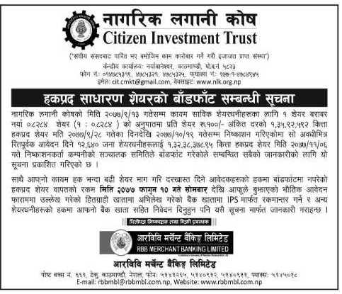 नागरिक लगानी कोषको हकप्रद शेयर बाँडफाँड