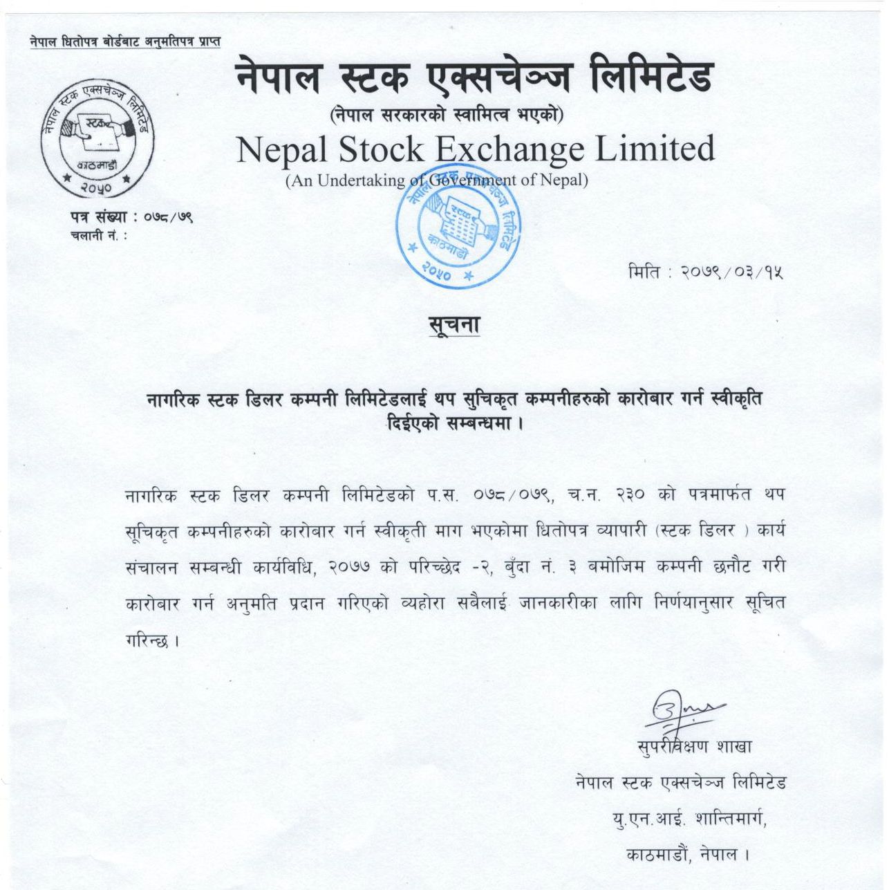 नागरिक स्टक डिलरले पायो थप सूचीकृत कम्पनीको कारोबार गर्न स्वीकृती