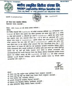 काठमाडौं । नाडेप लघुवित्त वित्तीय संस्था लिमिटेडले प्रस्ताव गरेको लाभांश रद्ध भएको छ । नाडेप लघुवित्त र डिप्रोक्स लघुवित्त वित्तीय संस्थाबिच हुने प्राप्ति सम्झौता रद्ध भएकोले लघुवित्तले प्रस्तावित लाभांश रद्ध गरेको हो ।