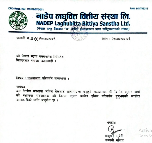 नाडेप लघुवित्तको सञ्चालक परिवर्तन