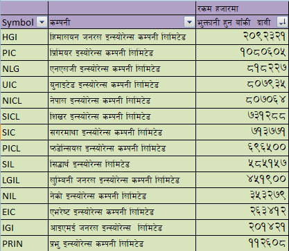 राष्ट्रिय बीमा कम्पनीको तेश्रो त्रैमासको रिपोर्टमा भुक्तानी हुन बाँकी दाबी रकम उपलब्ध नभएको