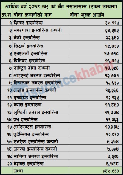 करोडमा बीमा शुल्क आर्जन गर्ने कम्पनी