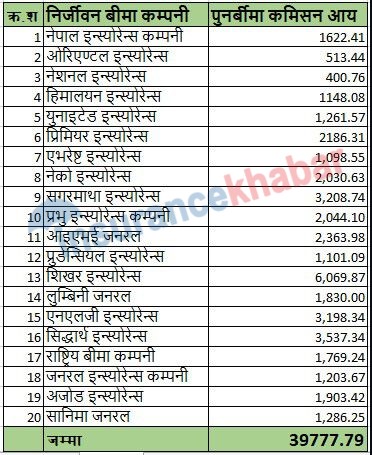 निर्जीवन बीमा कम्पनीले पुनर्बीमा कमिशन बापत कमाए तीन अर्ब ९७ करोड, कुनको कति (सूचिसहित)
