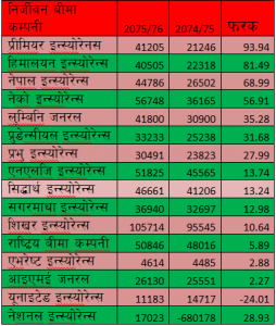 निर्जीवन बीमा कम्पनीहरुको खुद नाफा औसत २८ प्रतिशतले बढ्यो