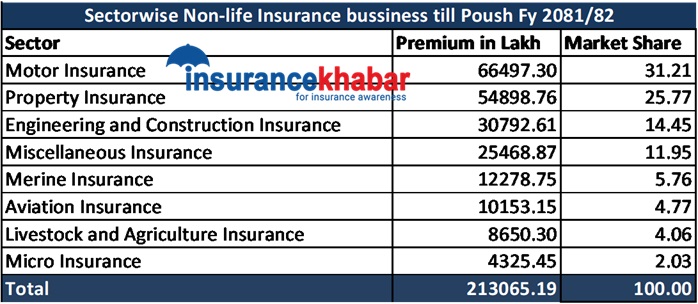 निर्जीवन बीमा व्यवसायमा मोटरको हिस्सा ३१.२१%, अन्य क्षेत्रको कति ?