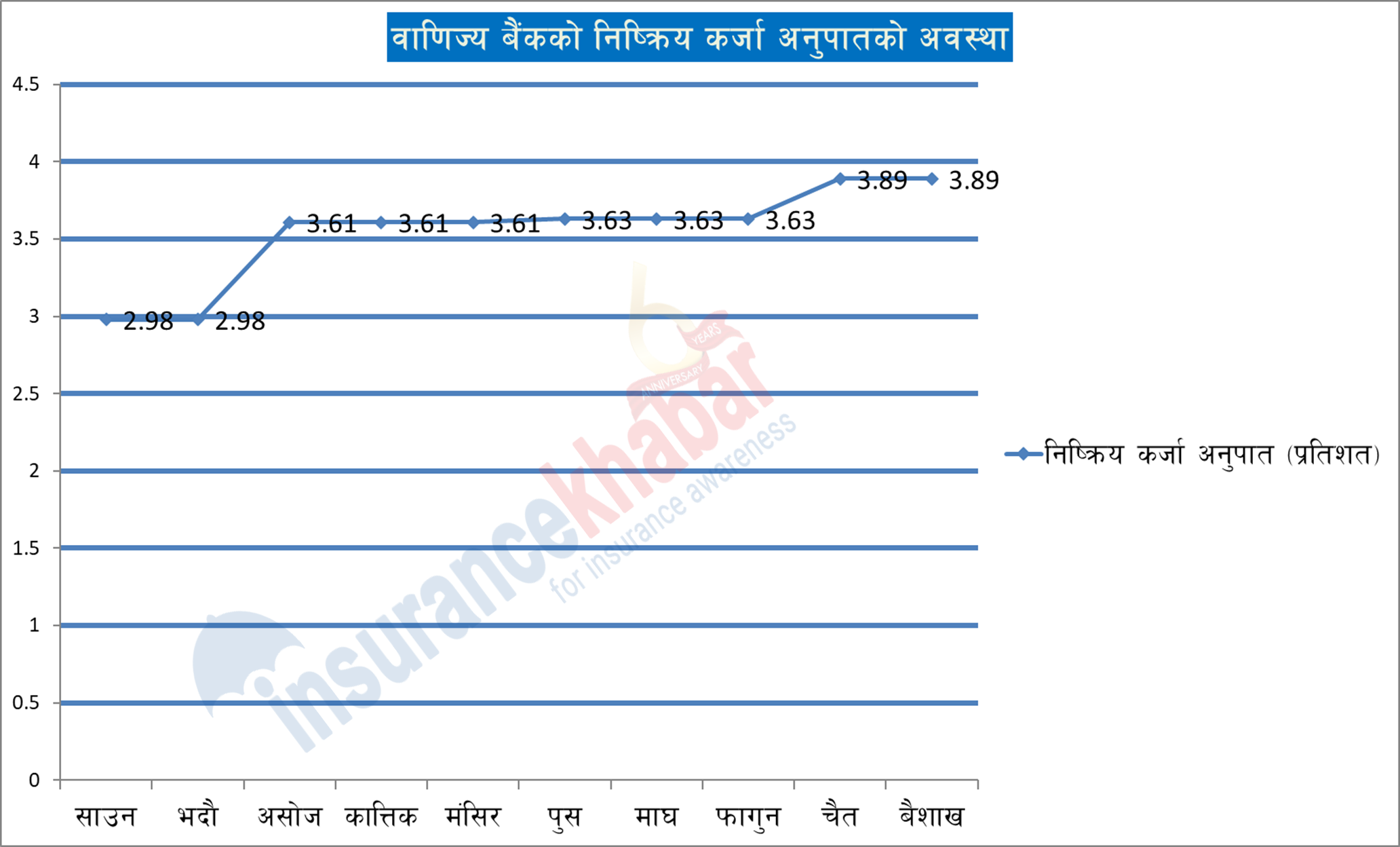 तथ्यांकअनुसार गत साउन र भदौमा वाणिज्य बैंकको निष्क्रिय कर्जा अनुपात २.९८ प्रतिशत थियो। त्यसपछि असोज कात्तिक र मंसिरमा वाणिज्य बैंकका निष्क्रिय कर्जा अनुपात बढेर औसतमा ३.६१ प्रतिशत पुग्यो। त्यो ३ महिनापछि फेरि बैंकहरुको निष्क्रिय कर्जा अनुपात बढ्यो। जसअनुसार पुस, माघ र फागुनमा वाणिज्य बैंकको औसत निष्क्रिय कर्जा अनुपात ३.६३ प्रतिशत रह्यो भने चैत र बैशाख महिनामा यस्तो कर्जा अनुपात ३.८९ प्रतिशत पुगेको छ।