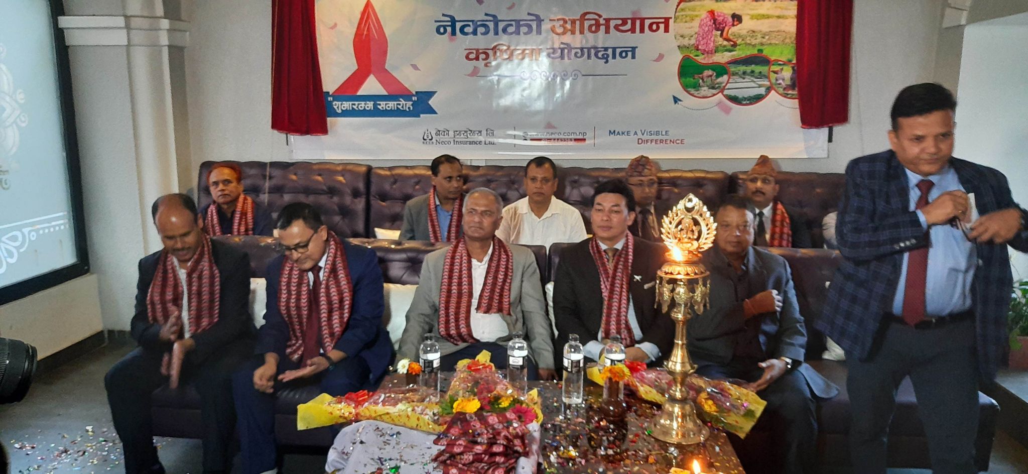 काठमाडौं । नेको इन्स्योरेन्स कम्पनीले कृषि बीमालाई निम्न वर्गका जनसमुदायमा पुर्याउने उद्देश्य सहित ‘नेकोको अभियान कृषिमा योगदान’ नामक कार्यक्रमको शुभारम्भ गरेको छ । बीमा समितिका अध्यक्षले आज एक विशेष कार्यक्रमका विच यस अभियानको उद्घाटन गरेका छन् ।