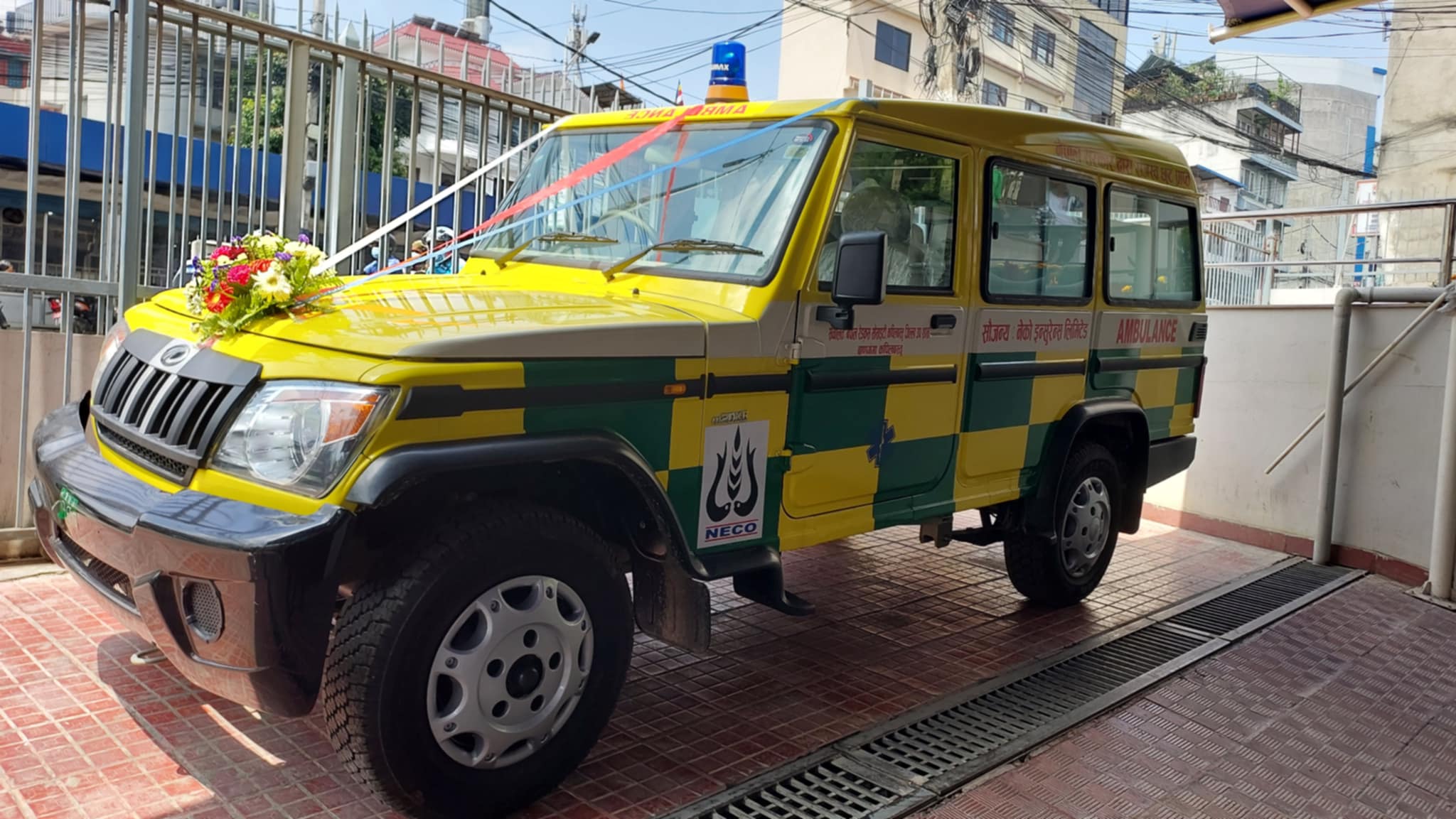 नेको इन्सुरेन्सले ३ वर्षअगाडि नै ७ वटै प्रदेशमा एक–एकवटा एम्बुलेन्स प्रदान गर्ने निर्णय गरेको थियो। तर, एम्बुलेन्स लिन धेरै प्रक्रिया पूरा गर्नुपर्ने, भन्सार छुटका लागि ३ वटा मन्त्रालयसँग सम्झौता गर्नुपर्नेजस्ता प्रक्रिया पूरा गर्नुपर्ने भएकोले लुम्बिनीबाहेक अन्य प्रदेशमा एम्बुलेन्स वितरण गर्न नसकिएको कार्यक्रममा जानकारी दिइएको छ।
