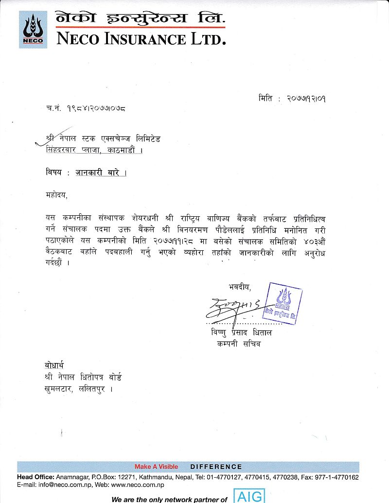 नेको इन्स्योरेन्सको सञ्चालकमा पौडेल नियुक्त
