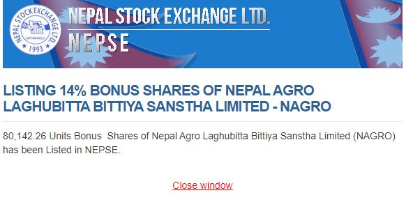 कम्पनीको असार २१ गते सम्पन्न वार्षिक साधारण सभाबाट पारित भएको १४ प्रतिशत बोनश शेयर सुचिकृत गराएको हो । अब यस शेयर लगानीकर्ताले डिम्याट खातामा आएपछि खरीदविक्री गर्न सक्नेछन् ।