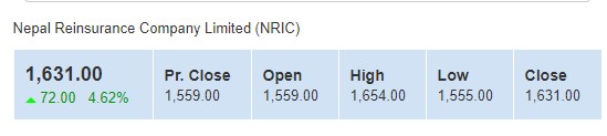ईण्ट्राडे हेर्दा कम्पनीको बजार मूल्य १६५४ को उच्च विन्दु सम्म पुगेको थियो।