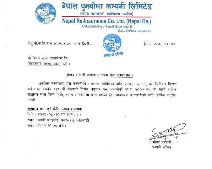 नेपाल पुनर्बीमा कम्पनीले आब्हान गर्यो सातौं वार्षिक साधारण सभा