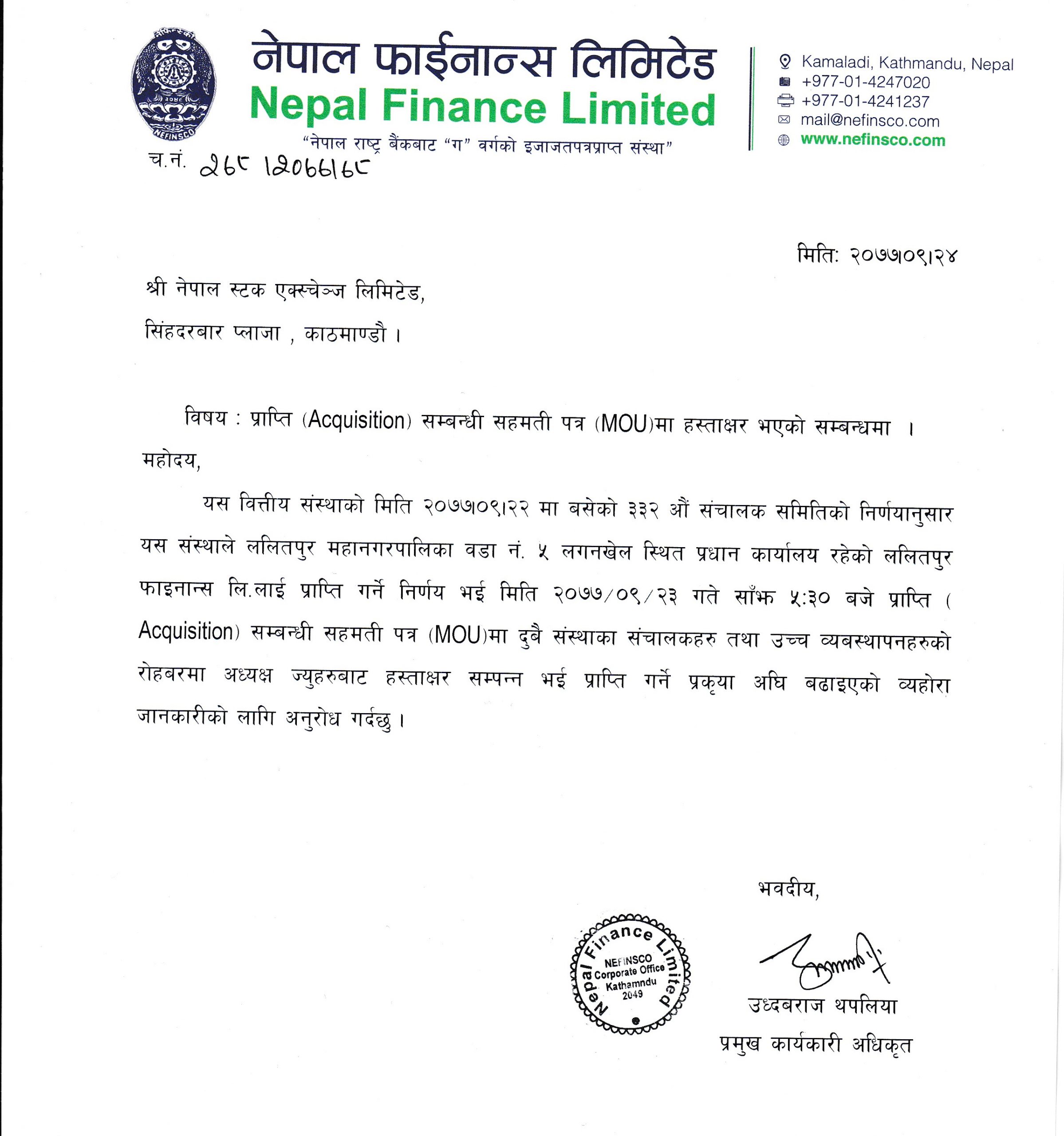 नेपाल फाइनान्समा ललितपुर फाइनान्स गाभिने, सहमति पत्रमा हस्ताक्षर