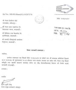 नेपाल बगंलादेश बैंकले प्रस्ताव गर्यो लाभांश