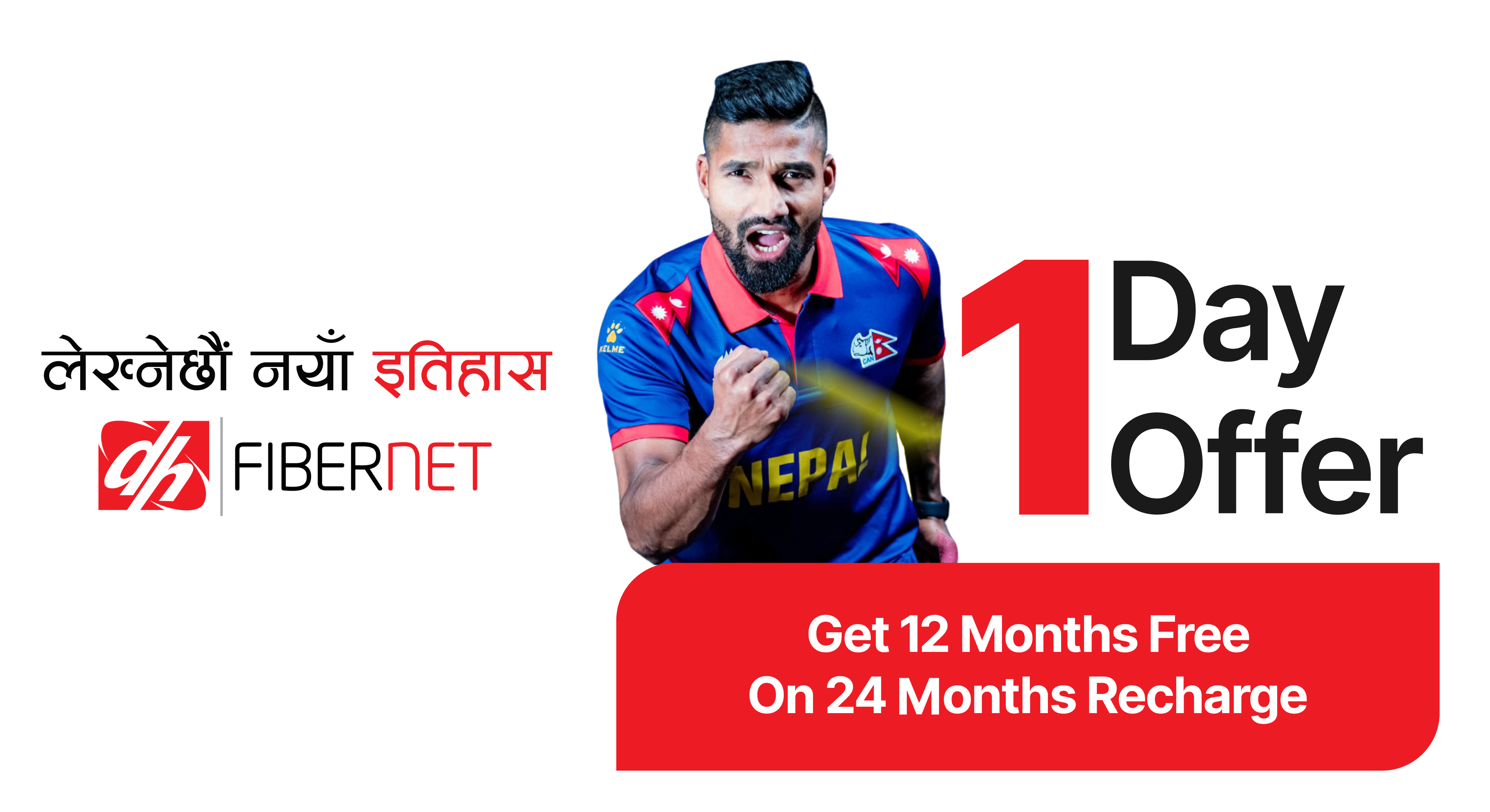 काठमाडौं । जारी आईसीसी पुरुष टि २० विश्वकपमा नेपालले ग्रुप स्टेज अन्तर्गत आज मंगलबार राती ९ः१५ बजे नेदरल्यान्डसँग आफ्नो पहिलो खेल खेल्दै छ । यी दुई टिमबीचको खेलको खुसीयालीमा डिशहोम फाइबरनेटले २४ महिनाको रिचार्ज गर्दा अतिरिक्त १२ महिनाको सब्सक्रिप्सन निःशुल्क पाउने अफर ल्याएको छ ।
