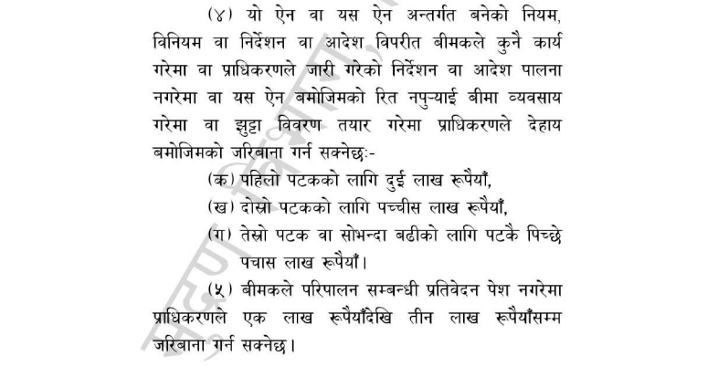 यदि कम्पनीले पटक पटक दिएका निर्देशनको उल्लंघन गरेमा प्राधिरकणले ऐनमै टेकेर कारबाही गर्ने चेतावनी दिएको छ । बीमा ऐन २०७९ धेरै नै शक्तिशाली भएको हुँदा यदि कम्पनीले यसरी नै अटेर गर्दै यो भने ठुलो रकम चुकाउनु पर्नेछ । प्राधिकरणका एक उच्च अधिकारीका अनुसार बीमा ऐन २०७९ को दफा १३८ को उपदफा ४ बमोजिम यो ऐन वा यस ऐन अन्तर्गत बनेको नियम, विनियम वा निर्देशन वा आदेश विपरित बीमकले कुनै कार्य गरेमा वा प्राधिकरणले जारी गरेको निर्देशन वा आदेश पालना नगरेमा वा यस ऐन बमोजिम रित नपुर्याई बीमा व्यवस्या गरेमा वा झुट्टा विवरण तयार गरेमा प्राधिरकणले पहिलो पटकका लागि २ लाख रुपैयाँ, दोस्रो पटकका लागि २५ लाख रुपैयाँ, तेस्रो पटक वा सो भन्द बढीको लागि पटकै पिच्छे ५० लाख रुपैयाँका दरले जरिवाना गर्न सक्नेछ ।