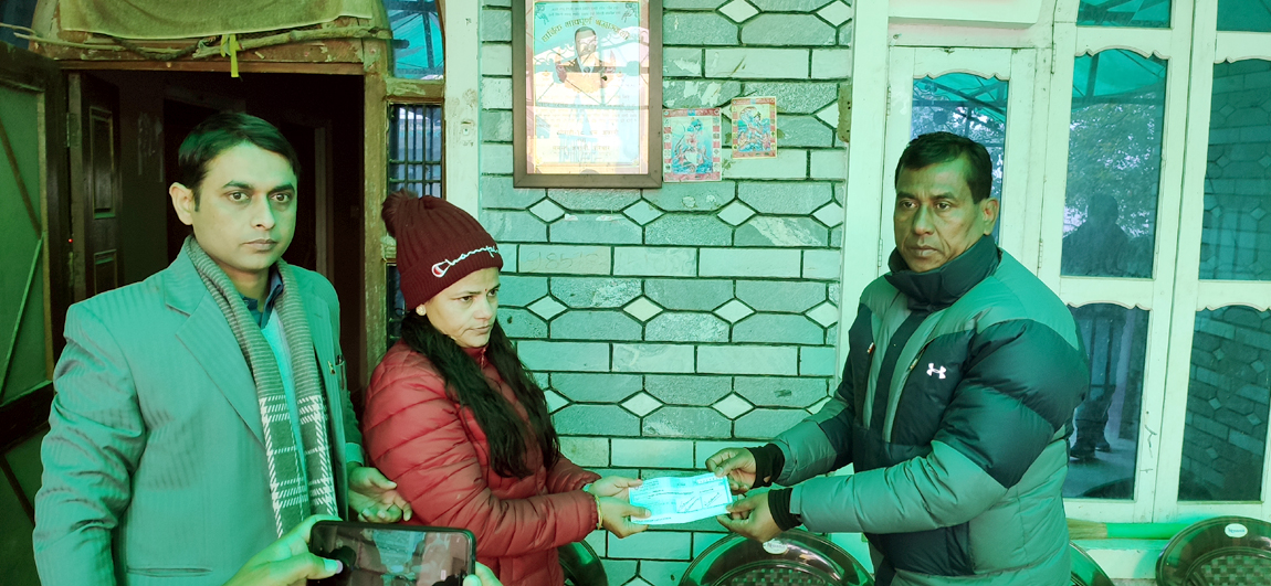बीमा दावी बापतको रकम घोराही उपमहानगरपालिकाका प्रमुख नरुलाल चौधरी र शाखा प्रमुख अधिकारीले संयुक्त रुपमा स्वर्गीय रिजालको पत्नी इन्दिरा रिजाललाई हस्तान्तरण गरेका हुन् ।