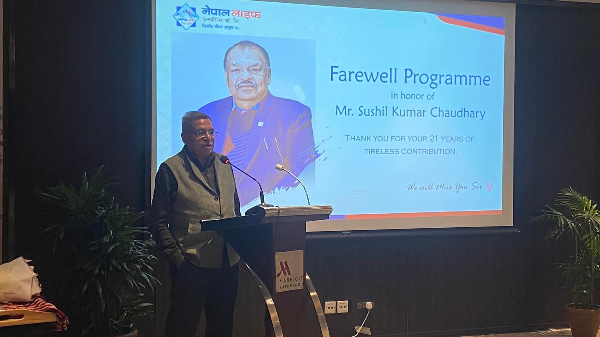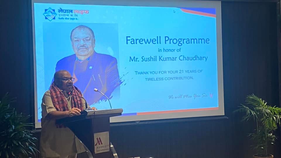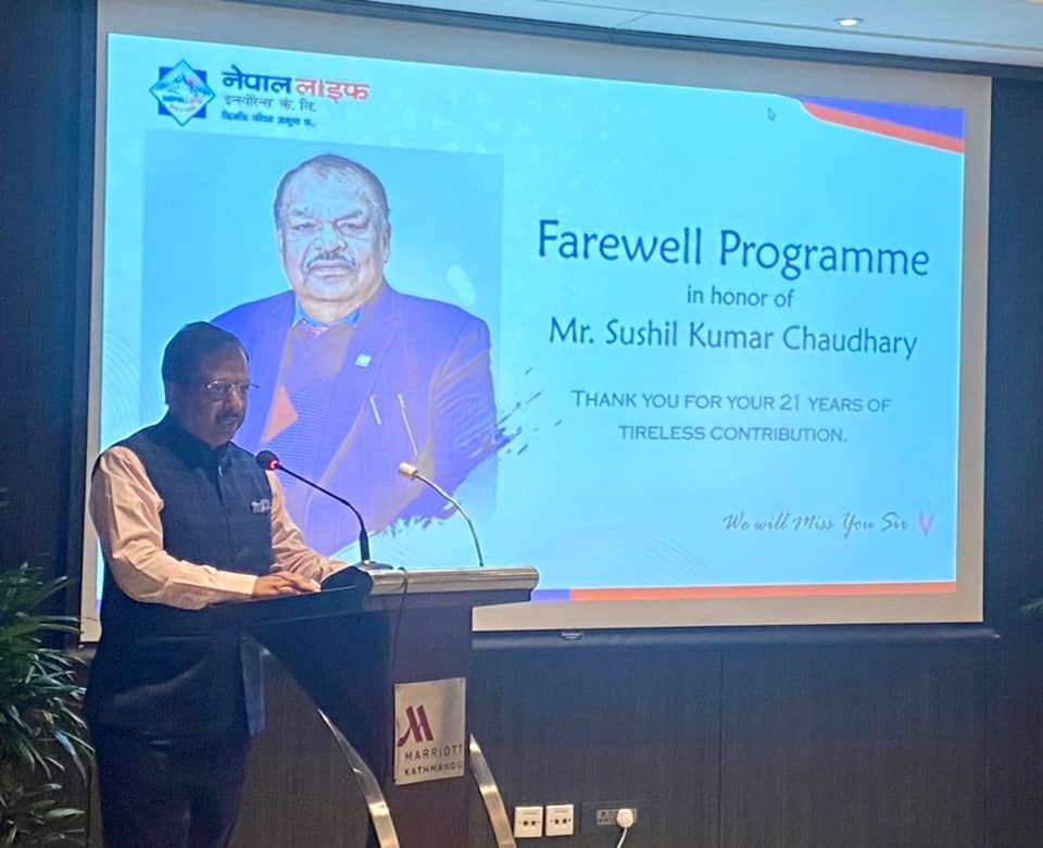काठमाडौं । नेपाल लाईफ इन्स्योरेन्सको कार्यवाहक प्रमुख कार्यकारी अधिकृत रहेका सुशिल कुमार चौधरीको आइतबार एक विशेष समारोहमा सम्मान सहित बिदाई गरिएको छ ।