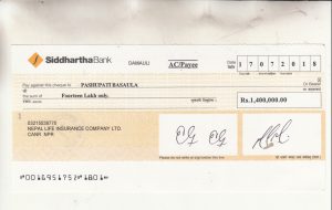 बैदेशिक रोजगारको शिलशिलामा देउराली ९, कास्की घर भएका सन्तराज बसौलाको दुबइमा मृत्यू भएकोमा निजले रु ५३३० तिरेर नेपाल लाइफ इन्स्योरेन्समा गरेको रु १० लाखको बैदेशिक रोजगार बिमा अन्तर्गत मुल बीमान्क रु १० लाख , शब स्वदेस ल्याउन लागेको खर्च रु १ लाख काजकिरिया खर्च रु १ लाख तथा अतिरिक्त आयको नोक्सानी रु २ लाख गरी जम्मा दाबी भुक्तानी रकम रु १४ लाख निजकी श्रीमती नेपाल लाईफ इन्स्योरेन्स दमौलीका शाखा प्रवन्धक बिष्णु बहादुर अधिकारीले एक कार्यक्रमका बीच हस्तान्तरण गर्नुभयो ।