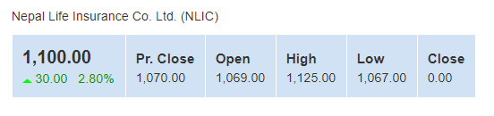 जीवन बीमा कम्पनीमध्ये पनि लिडर नेपाल लाइफ इन्स्योरेन्समा लगानीकर्ताको आकर्षण बढ्दो छ। आज नेपाल लाईफको शेयर मूल्य प्रति कित्ता ३० रुपैयाले वृद्धि हुँदै ११०० मा बजार मूल्य बन्द भएको छ। आज कम्पनीको सर्वाधिक १८ करोड ४० लाख बराबरको शेयर खरिद बिक्री भएको छ।
