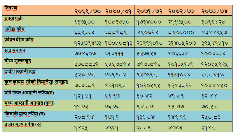नेपाल लाईफ इन्स्योरेन्स कम्पनी लिमिटेडको ५ वर्षको वित्तिय विवरण :