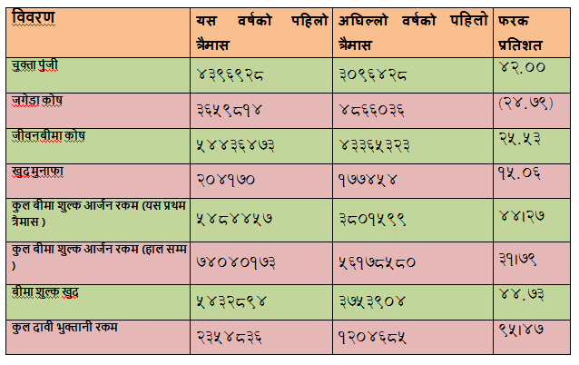नेपाल लाइफ इन्स्योरेन्सको प्रथम त्रैमासको वित्तीय विवरण :