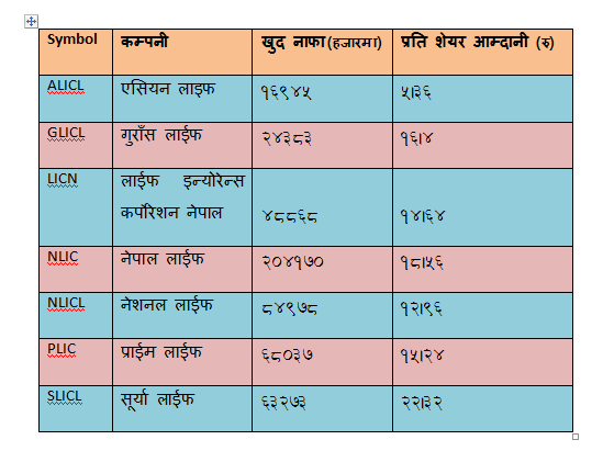 लेखापरीक्षण नभएको बित्तिय विवरणमा एक्चुअरी मुल्यांकन हुन बाँकी भएकाले खुद नाफा र प्रति शेयर आम्दानी भने एक्चुअरी मुल्यांकन पश्चात मात्र वास्तविक आउने छ ।