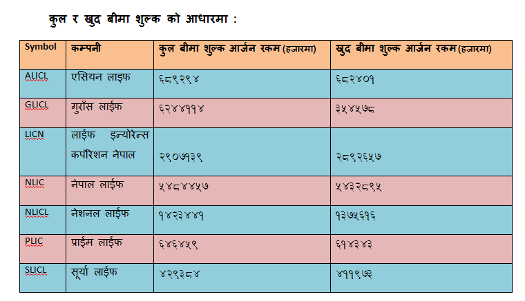 अरु लाईफ इन्स्योरेन्स कम्पनी संग नेपाल लाईफको तुलनात्मक अध्ययन ( पहिलो त्रैमासको आधारमा )