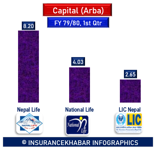 नेपाल लाईफ इन्स्योरेन्सको चुक्ता पुँजी ८ अर्ब २० करोड छ भने नेशनल लाईफ इन्स्योरेन्सको चुक्ता पुँजी ४ अर्ब ३ करोड रहेको छ त्यस्तै लाईफ इन्स्योरेन्स कर्पोरेशन नेपालको चुक्ता २ अर्ब ६५ करोड रहेको छ । नेपाल बीमा प्राधिकरणका अनुसार जीवन बीमा कम्पनीलाई ५ अर्ब चुक्ता पुँजी आवश्यक पर्ने देखिन्छ । नेपाल लाइफ इन्स्योरेन्सको चुक्ता पुँजी प्राधिकरणले तोकेको पुँजी भन्दा पनि धेरै छ भने एलआईसी नेपाल र नेशनल लाईफको भने पुँजी कम रहेको छ ।