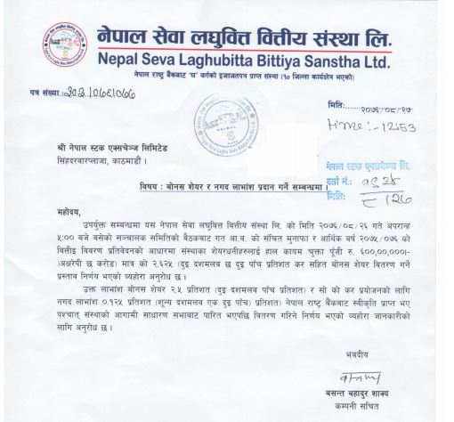 नेपाल सेवा लघुवित्तद्धारा लाभांश प्रस्ताव