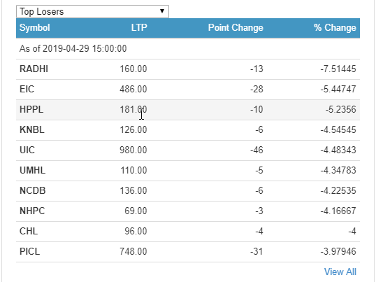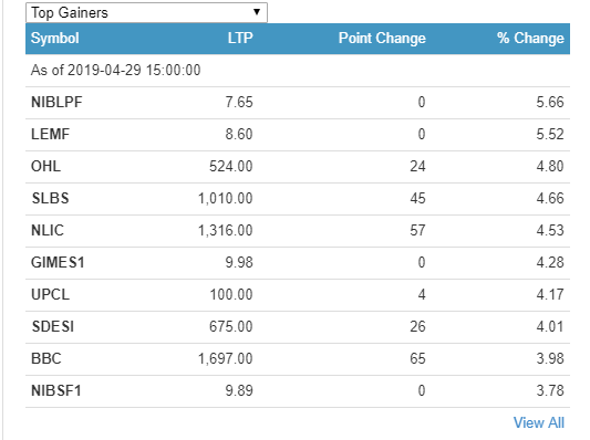 सबै भन्दा धेरै एनआईबीएल प्रगती फन्डको सेयरमा ५ दशमलव ६६ प्रतिशतको वृद्धि देखियो भने सबै भन्दा धेरै रादी विधुत् कम्पनीकोे शेयर ७ दशमलव ५१ प्रतिशतले घट्न पुग्यो ।