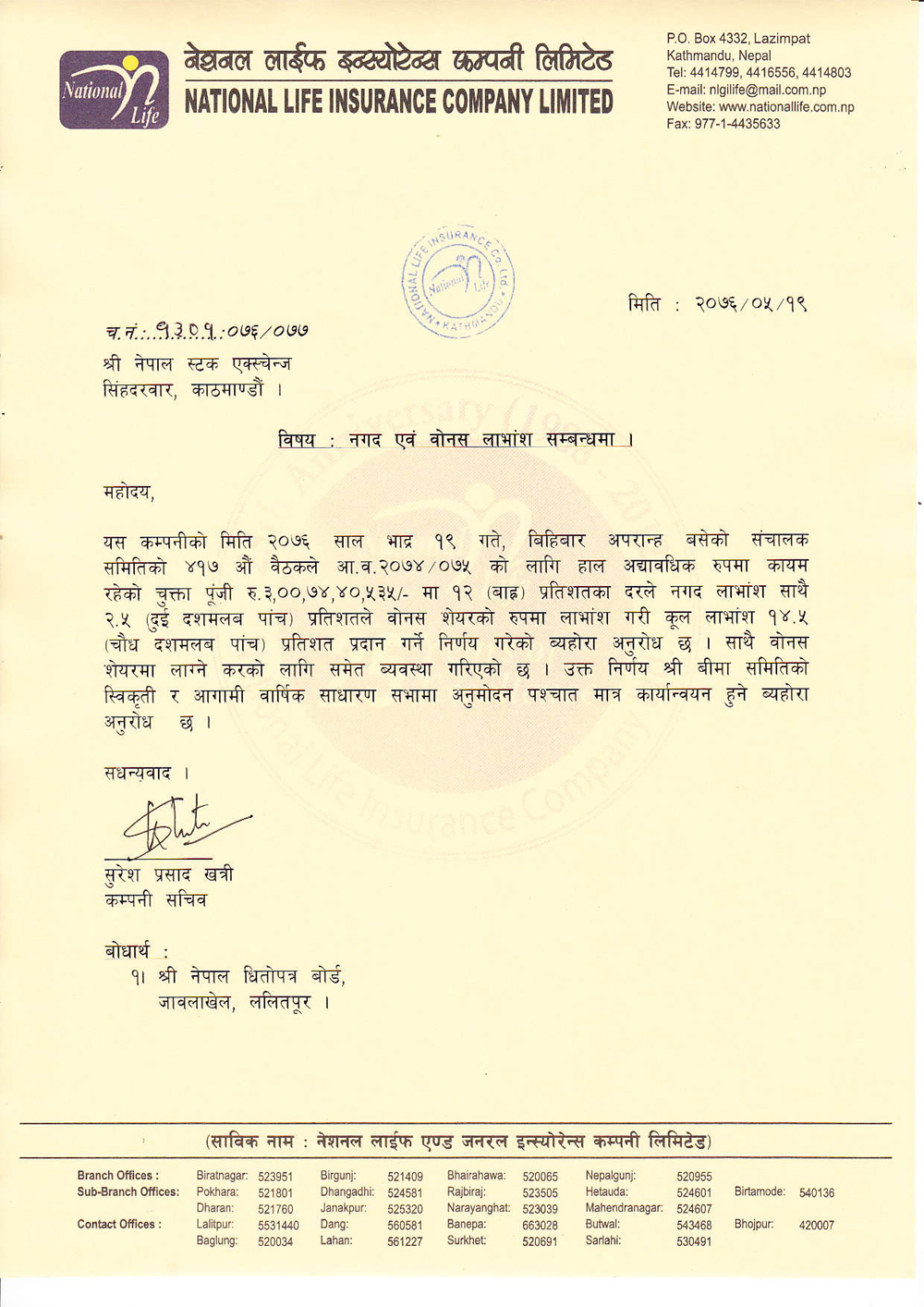 यद्यपि नेशनल लाईफ इन्स्योरेन्सले नेप्सेमा बुझाएको पत्रमा अपरान्ह भन्ने समय उल्लेख गरिएको छ । अपरान्ह भन्नाले ठोस समय नजनाउने हुँदा नेप्सेले चित्त नबुझाएर स्पष्टिकरण सोधेको देखिएको छ ।