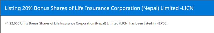 कम्पनीको गत फागुन ११ गते सम्पन्न वार्षिक साधारण सभाबाट पारित २० प्रतिशत बोनश शेयर सूचिकृत भएको हो । अश यस बोनश शेयर हितग्राही खातामा आएपछि शेयरधनीले खरीदविक्री गर्न सक्नेछन् ।