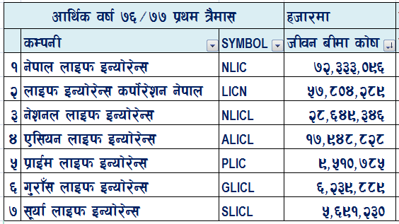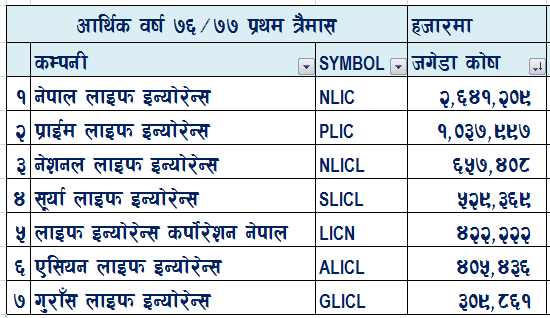 जीवन बीमा कोषको आधारमा :