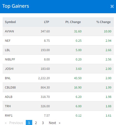 आज सबैभन्दा धेरै अभियान लघुवित्त वित्तीय संस्थाका लगानीकर्ताले कमाएका छन् । कम्पनीका लगानीकर्ताले १० प्रतिशतका दरले कमाएका छन् । नविल इक्यिवटी फण्डका इकाईधनीले २ दशमलव ९४ प्रतिशतका दरले कमाएका छन् । लक्ष्मी बैंकका लगानीकर्ताले २ दशमलव ६६ प्रतिशतका दरले कमाएका छन् ।