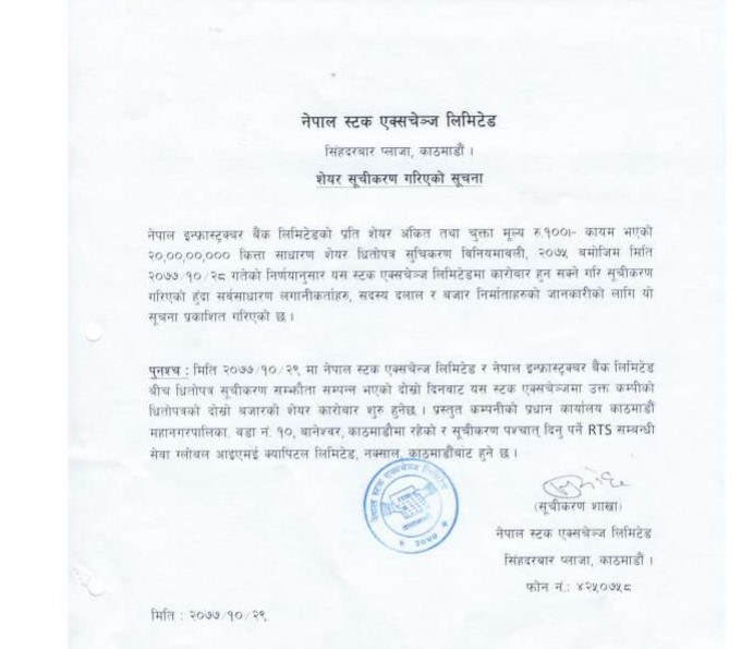 नेप्सेमा नेपाल इन्फ्रास्ट्रक्चर बैंकको आइपीओ सूचीकृत