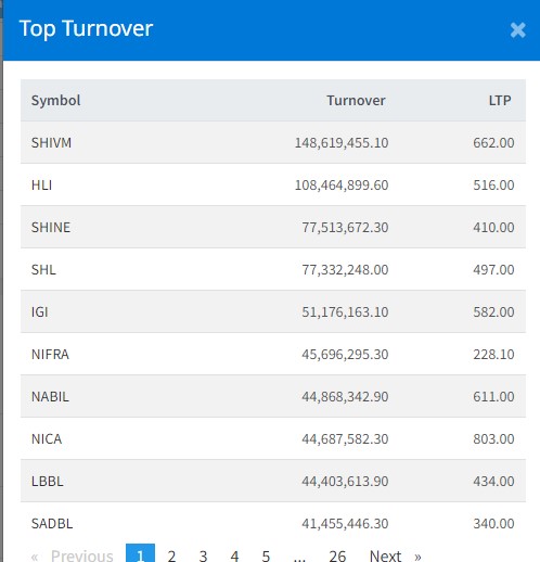 आज कम्पनीको १४ करोड ८६ लाख रुपैयाँको शेयर कारोबार भएको छ । हिमालयन लाइफको १० करोड ८४ लाख रुपैयाँको शेयर कारोबार भएको छ । शाइन रेसुङगा डेभलपमेन्ट बैंकको ७ करोड ७५ लाख रुपैयाँको शेयर कारोबार भएको छ ।