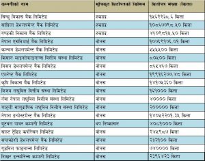 सेयर सुचीकृत हुनेमा चार वाणिज्य बैंक, छ विकास बैंक, चार लघुवित्त कम्पनी, बुटवल पावर कम्पनी, साल्टट्रेडिङ कर्पोरेशन र शिखर इन्स्योरेन्स कम्पनी रहेका छन् ।