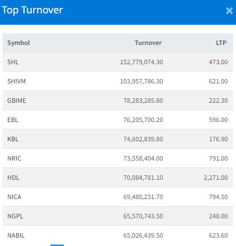 त्यस्तै, शिवम् सिमेन्टको १० करोड ३९ लाख रुपैयाँको शेयर कारोबार भएको छ । ग्लोबल आइएमई बैंकको ७ करोड ८२ लाख रुपैयाँको शेयर कारोबार भएको छ । एभरेष्ट बैंकको ७ करोड ६२ लाख रुपैयाँको शेयर कारोबार भएको छ ।