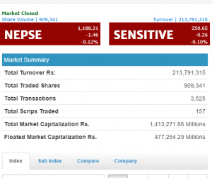 नेप्से परिसूचक मंगलबार १.४६ अंकले घटेर ११८८ को विन्दुमा, आज निर्जीवन बीमा उपसूचकको ०.१९ ले बढ्यो